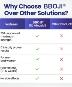 BBOJI® Maximum Strength 5% Minoxidil Fast-Action Hair Growth Serum is the breakthrough you’ve been waiting for. Unlike other products that make empty promises, our formula contains the maximum -approved concentration of Minoxidil – the only ingredient clinically proven to regrow hair.
