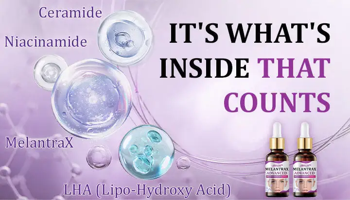 ✅ Melanin Control: MelantraX technology targets the melanin production process, helping to decrease excessive pigmentation.