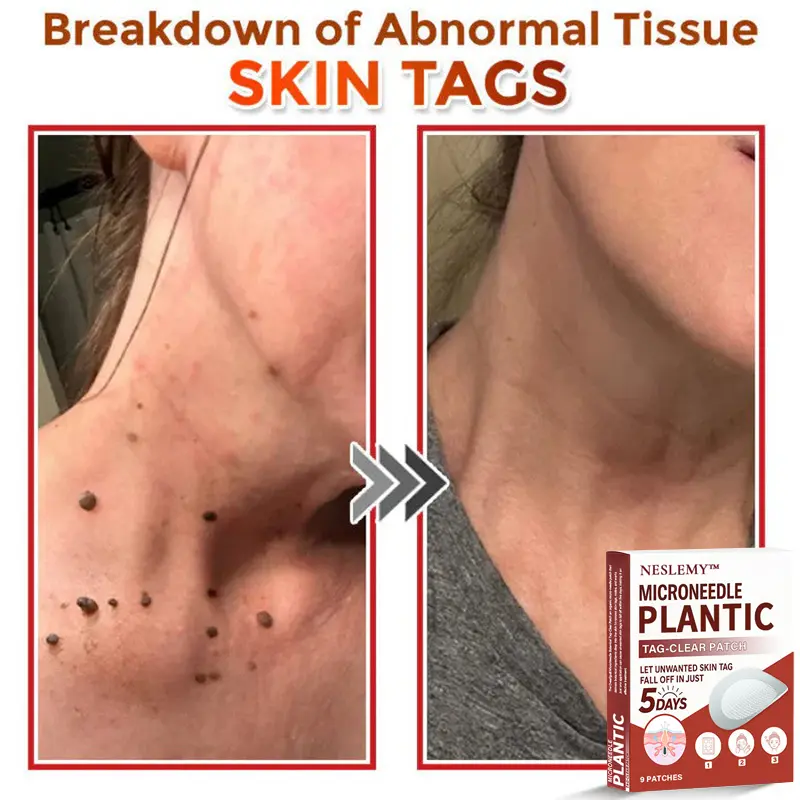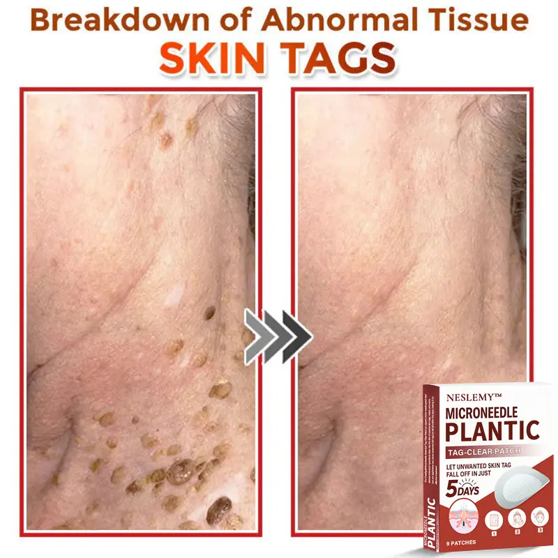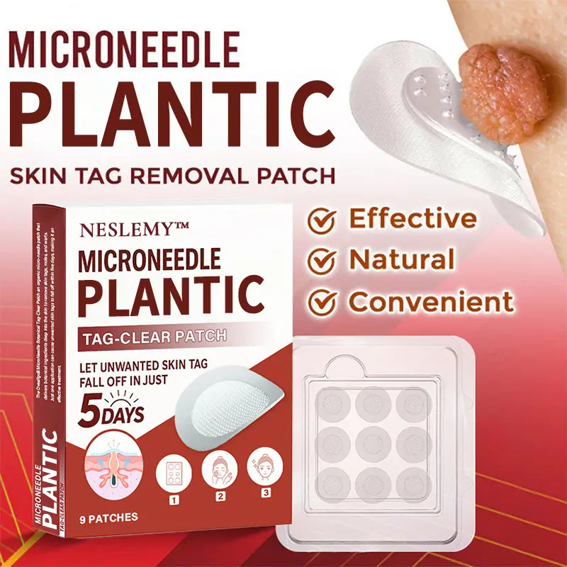 The NESLEMY® MicroNeedle Plantic Tag-Clear Patch is an organic micro-needle patch that delivers Plantic ingredients deep into the skin to remove skin tags, moles, and warts. Just one application can cause unwanted skin tags to fall off within five days, making it an effective treatment. It is highly recommended by pharmacists and dermatologists worldwide for its safety, reliability, and non-prescription convenience.