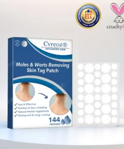 Cvreoz® Moles & Warts Removing Skin Tag Patch is a clinically proven, non-invasive solution designed to eliminate skin tags, moles, and warts safely and effectively. It penetrates deep into the skin to break down growths at the root while promoting natural healing—delivering visible results in as fast as two weeks without scarring or irritation. Unlike harsh chemical treatments or painful procedures, Cvreoz® offers a gentle, targeted approach that is safe for all skin types. Dermatologist-recommended and trusted by thousands, Cvreoz® is backed by rigorous testing to ensure proven results. With its easy-to-use patch design, it provides a painless and convenient at-home solution for clear, blemish-free skin—no surgery, no hassle!