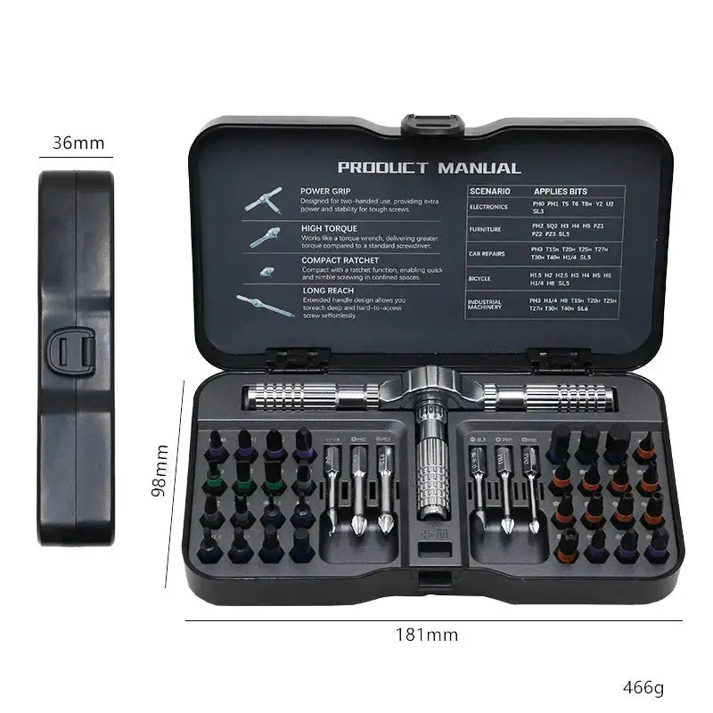 👉 24 industrial-grade S2 chromium-molybdenum alloy steel screwdriver bits, continuous heat treatment. 5 types of screwdriver heads, to meet the needs of professional use, home life, work, DIY, and maintenance. Labor-saving 6.2-degree ratchet design, 58-tooth positive and negative rotation ratchet structure, save 80% effort.👨🔧