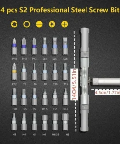 24Pcs Industrial grade S2 chrome molybdenum alloy steel screwdriver heads, with continuous heat treatment process. Assisted high precision CNC integrated molding, carburizing thermal refining, industrial grade service life, hard but not brittle, full of toughness.