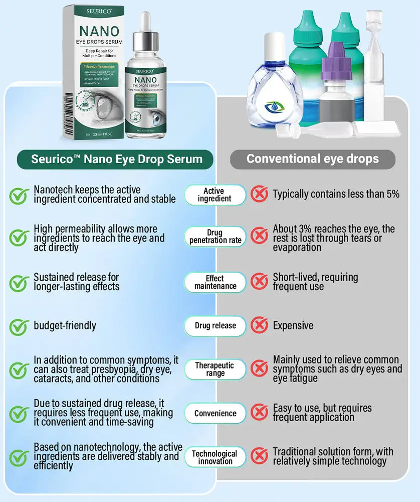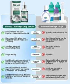 Unlike traditional drops that evaporate quickly or offer short-term relief, Seurico™ Nano Eye Drops Serum delivers deeper, longer-lasting eye therapy thanks to advanced nanotechnology.