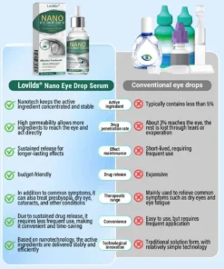 Lovilds® Nano Eye Drops Serum use the most advanced nanotechnology, employing polymer nanoparticles to precisely deliver active ingredients, enhancing the drug’s penetration and effectiveness, ensuring it stays on the ocular surface for a longer period.