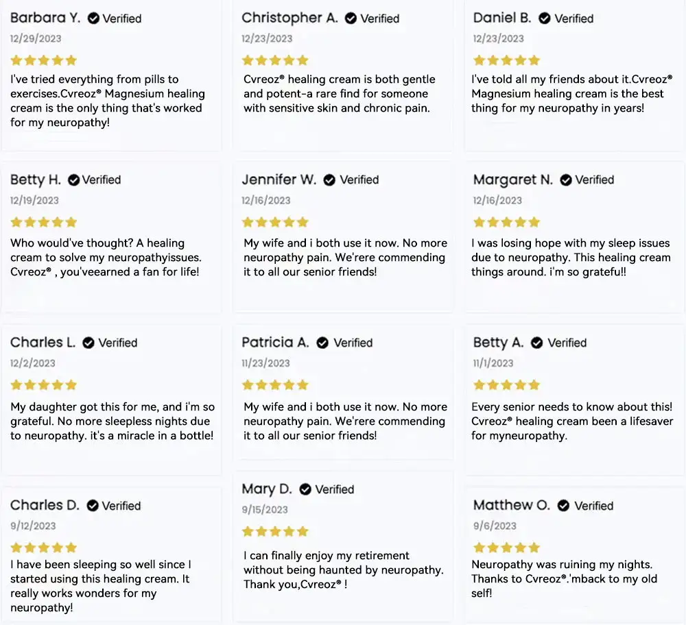 If you’re still suffering from insomnia and nerve pain, then our Cvreoz® Nerve Repair & Pain Relief Magnesium Cream is perfect for you! We’ve already successfully improved thousands of people’s nerve pain problems for years, helping them return to healthy living!