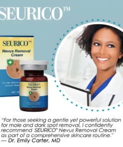 “As a dermatologist with over 15 years of experience specializing in skin disorders and cosmetic dermatology, I am highly impressed by the formulation of Seurico™ Nevus Removal Cream. The carefully selected natural ingredients, such as White Fresh Bark, Sophora Japonica Root, and Saffron, work synergistically to target unwanted nevi, dark spots, and blemishes safely and effectively.