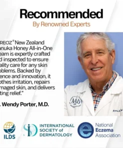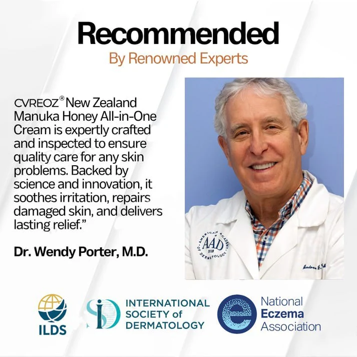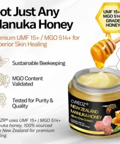 Cvreoz® New Zealand Manuka Honey All-in-One Cream is a targeted treatment for chronic skin issues like eczema, psoriasis, and butt acne. Powered by high-grade UMF 15+ / MGO 573+ Manuka honey, it penetrates deeply to calm inflammation, eliminate harmful bacteria, and repair the skin barrier, delivering visible results in weeks. Fast-absorbing and non-irritating, the cream begins working within 3 minutes, promoting cell regeneration and providing long-lasting relief.