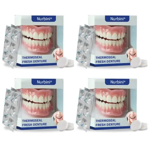 Nurbini® Thermal Seal is the first -approved thermo-adaptive denture, clinically proven to eliminate denture issues at home with a 99.3% success rate. With its innovative thermal seal technology, it gently warms to your body temperature in minutes, perfectly conforming to your unique oral contours. The revolutionary self-hydrating adhesive base actually becomes stronger with each use—creating an unbreakable seal and eliminating the need for messy adhesives forever.