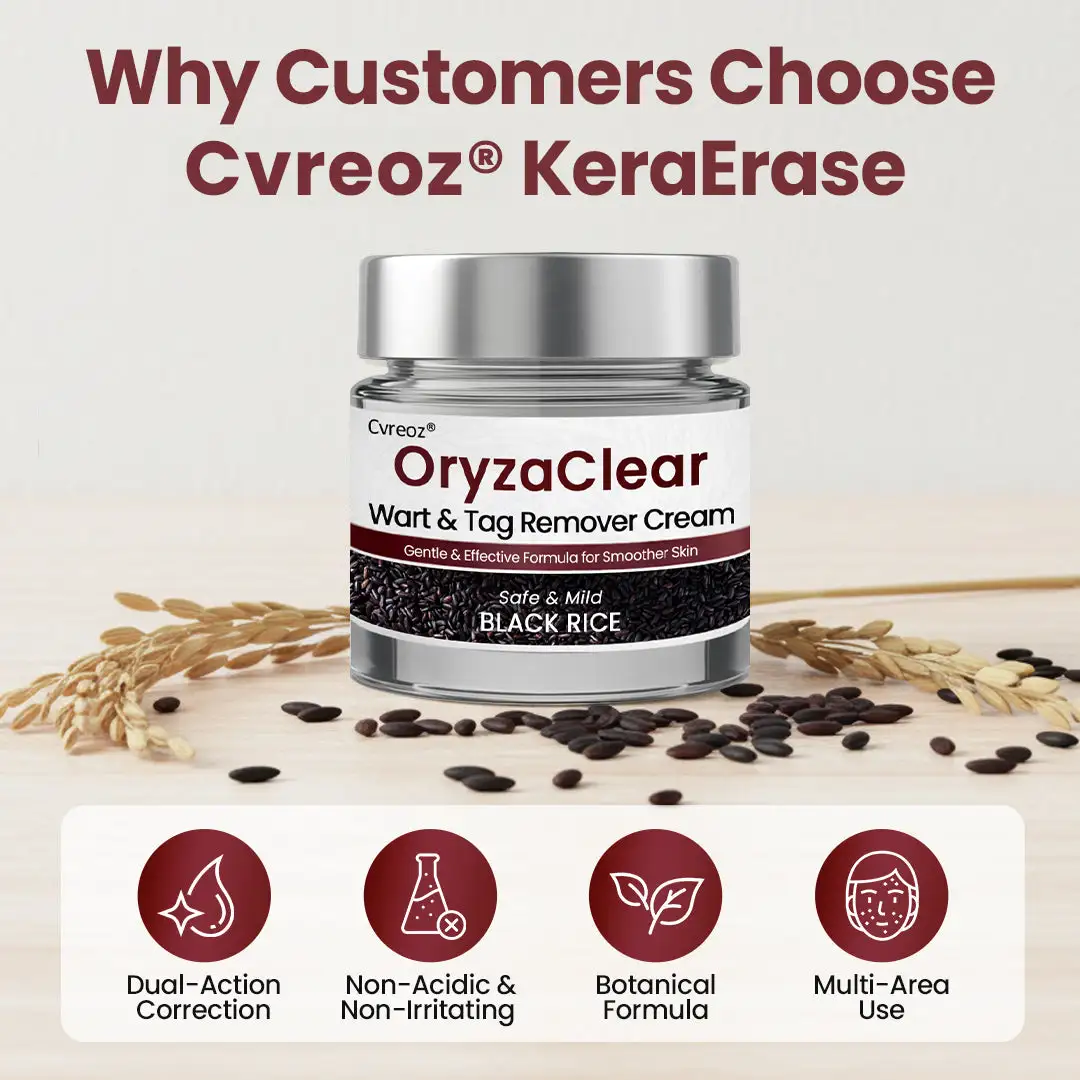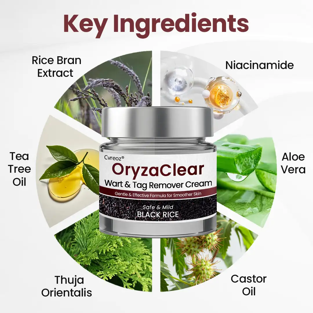 Q1. How does Cvreoz® OryzaClear remove skin tags and warts?