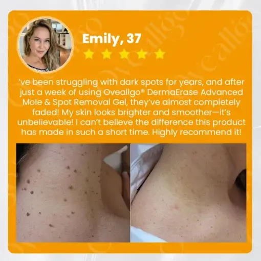 Discover the amazing results of Oveallgo® DermaErase Advanced Mole & Spot Removal Gel, loved by countless users.
