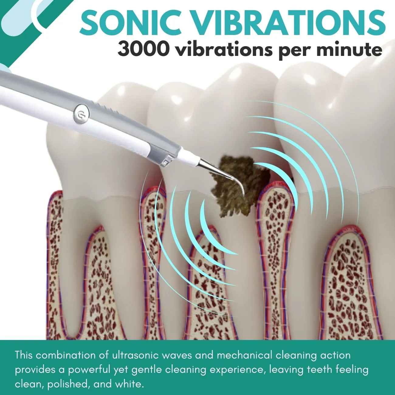 REMOVES PLAQUE, TARTAR AND STAINS WITH SONIC VIBRATIONS