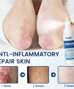 Timilk® PsoriCure Magnesium Herbal Spray penetrates deep into the skin, gently cleansing from within and quickly relieving itching and inflammation caused by psoriasis. This hormone-free, non-irritating formula is safe for sensitive and damaged skin. Timilk® PsoriCure helps regulate excessive skin cell proliferation, soothes redness, flaking, and stinging, and supports the restoration of the skin’s natural barrier—bringing your skin back to balance and health.