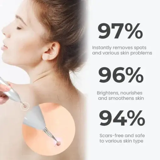 The QIAWI™ Portable Laser Spot Cleaning Pen offers a discreet and effective way to target blemishes and discolorations and to eliminate spots. Crafted with a sophisticated blend of modern technology and luxury design, this pen is your go-to source for making sure your skin is always looking its best. Its unique, pen-like shape allows for precise application, making it perfect for any removal needs. Remove up to 10 types of skin blemishes at home! It removes dark spots, mole, skin tag, freckles, nevus and even unwanted tattoos on any parts of your face and body! Try out QIAWI™ Portable Laser Spot Cleaning Pen, your ultimate anti-imperfection helper to gently, easily, and effectively eliminates blemishes. Reveal spotless skin in 10 days while ensuring zero appearance of scars.