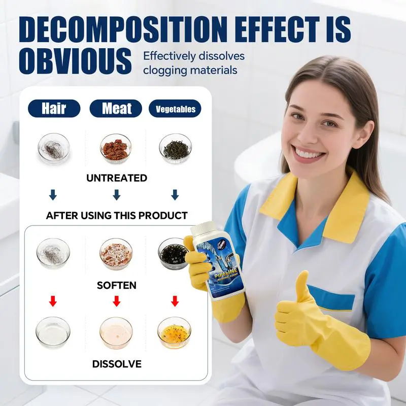 • WIDE RANGE OF SOLUBILITY: Effective on diverse clogs—grease, meat, vegetables, and more. No clog is too tough! 💪🔥