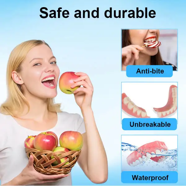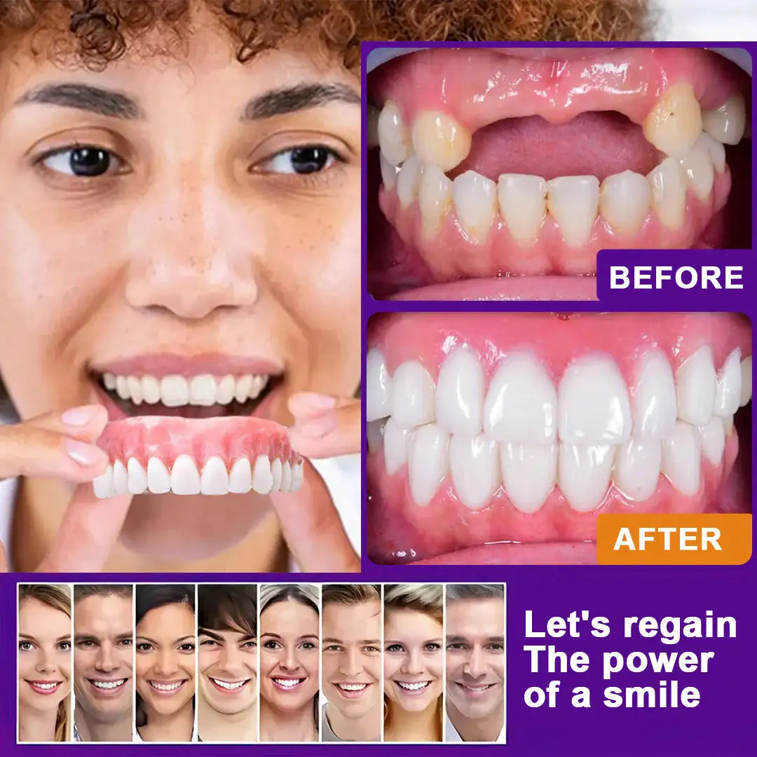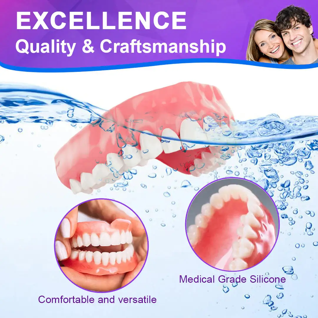 🌟 Easy Fit, Seamless Comfort: Enjoy dentures that adapt perfectly to your mouth from the moment you put them on. Our cutting-edge design ensures a snug and secure fit, providing exceptional comfort that feels like a natural part of your mouth. You can go about your day with confidence, free from discomfort or shifting, allowing you to eat, speak, and smile without any hassle or worry.