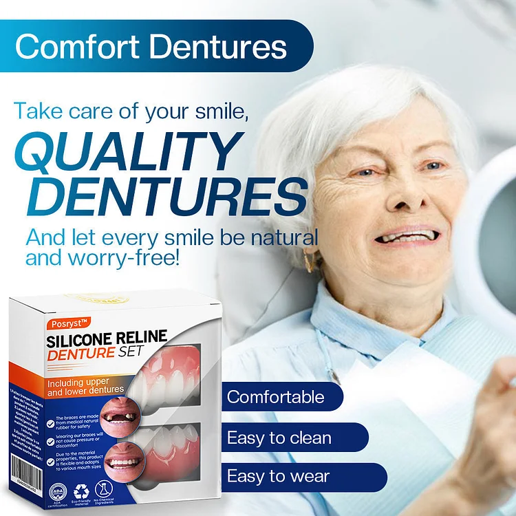 Posryst™ is dedicated to transforming lives through innovative dental solutions that enhance both your physical comfort and emotional well-being. Experience the freedom and confidence that so many others have already embraced with the Posryst™ Silicone Reline Denture Set. Join our growing community and discover how effortless it can be to enjoy a radiant, confident smile every day!