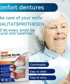 - Customizable Fit: Tailor-made silicone reline adjusts perfectly to your dentures.