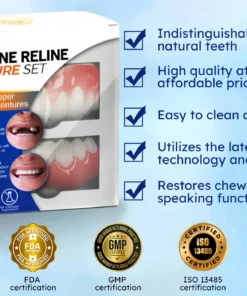 - Customizable Fit: Tailor-made silicone reline adjusts perfectly to your dentures.