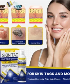 Discover the power of Cvreoz® Skin Tag Cryo Treatment Spray, a science-backed cryotherapy solution that freezes and eliminates unwanted skin growths quickly and painlessly. By rapidly lowering the temperature at the affected area, it helps break down abnormal cells, promotes natural shedding, and supports healthy skin regeneration — all from the comfort of your home. Visible results are often seen within just 2 weeks.