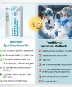 Say goodbye to expensive dermatology treatments, painful surgeries, and ineffective topical creams. The Bikenda® SpotAway Laser Pen offers a safe, non-invasive, professional-grade solution designed for convenient home use. Utilizing precise CO₂ laser technology, Bikenda® SpotAway effectively removes moles, warts, skin tags, dark spots, and other imperfections without causing cuts, burns, or irritation. Its -approved ultra-pulse mode ensures layer-by-layer controlled removal, minimizing the risk of scarring while promoting natural healing and skin regeneration.