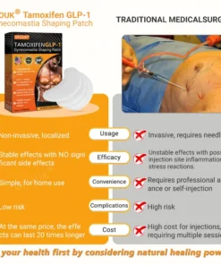 Choosing the GFOUK® Tamoxifen Gynecomastia Shaping Patch offers a convenient, non-invasive, and cost-effective solution for reducing chest fat. Unlike s, which require professional assistance, cause discomfort, and can result in higher costs and potential side effects, our patch is simple to use at home with minimal risk. It targets specific areas gradually, ensuring a smooth and consistent effect without the pain or complications associated with needle-based treatments. With Timilk®, you can achieve a firmer, healthier chest contour with ease, comfort, and confidence.