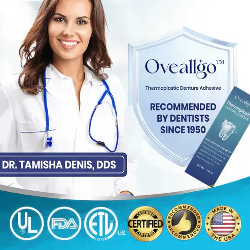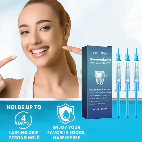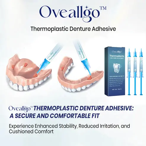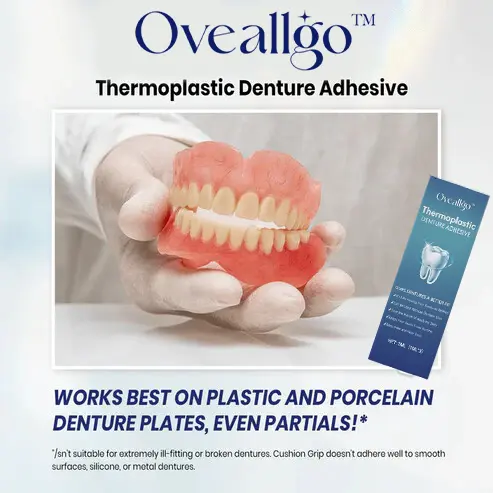 Say goodbye to denture discomfort with Oveallgo™ Thermoplastic Denture Adhesive – the ultimate path to denture bliss!