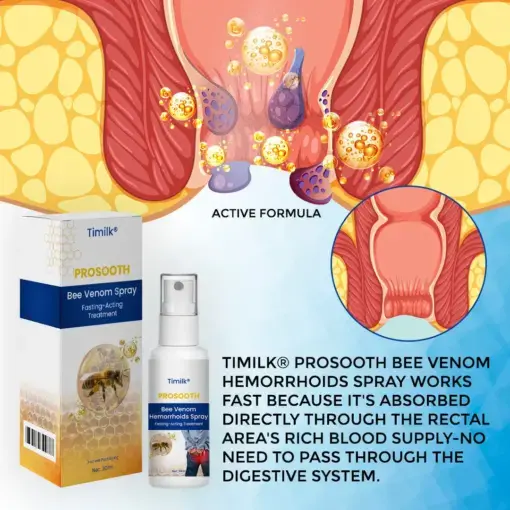 Timilk® ProSooth Bee Venom Hemorrhoids Spray delivers fast, medical-grade relief in a gentle, discreet mist. Formulated to ease irritation, reduce swelling, and promote lasting recovery, its easy-to-apply 360° design lets you treat flare-ups anytime, anywhere—so you can sit, move, and live comfortably and confidently again.