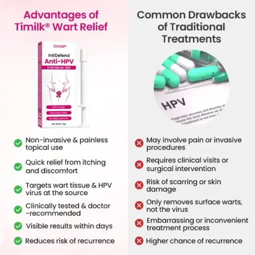 You’re not alone. Timilk® IntiDefend Interferon Gel uses a gentle, science-backed formula to stop HPV at the source—activating immune cells like macrophages to block viral replication and eliminate harmful pathogens. It strengthens your body’s natural defenses, speeds up mucosal repair, and helps rebuild a healthy intimate barrier. A breakthrough solution designed to protect, repair, and restore where it matters most.