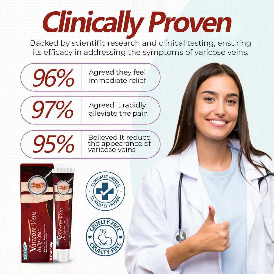 Backed by scientific research and clinical testing, NESLEMY™ Varicose Vein Relief Cream is proven to effectively address the symptoms of varicose veins. Its powerful formula helps reduce swelling, discomfort, and the visible appearance of veins, ensuring safe, long-lasting relief with consistent use.