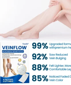 Unlike surface creams, the Timilk® VeinFlow Microneedle Repair Patch uses painless dissolving microneedles to deliver active botanicals deep into the skin — targeting the source of your discomfort and the bulging, visible veins.