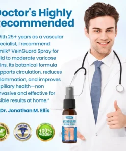 “With over 25 years as a vascular specialist, I recommend Timilk® VeinGuard Spray for mild to moderate varicose veins. It‘s transdermal botanical formula—clinically tested and containing Panthenol, Artemisia, and Gardenia—effectively supports microcirculation, reduces inflammation, and improves capillary health. This non-invasive, at-home spray relieves symptoms and visibly improves vein appearance over time.”—— Dr. Jonathan M. Ellis