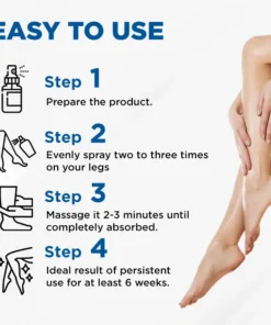 - Evenly spray two to three times on your legs