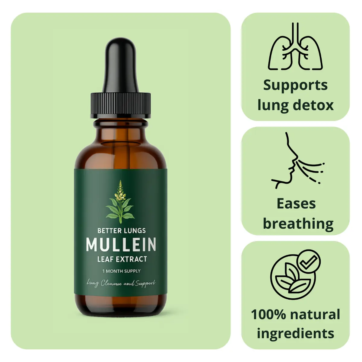 Years of trapped mucus can make breathing difficult, but Betterbrand Mullein Extract offers a smart, natural solution. Just two drops a day help clear your lungs and open your airways, making breathing easier and more comfortable.