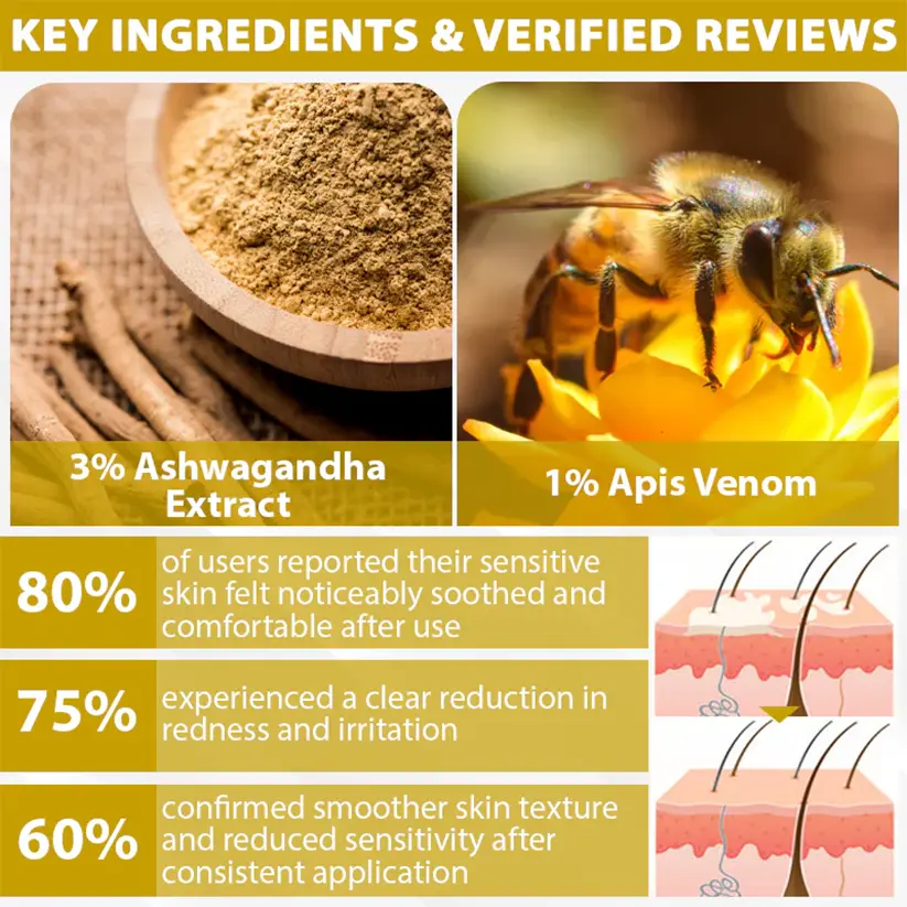 - Apis Venom: Delivers potent immune-calming effects and encourages healthy pigment regeneration while easing redness and inflammation.