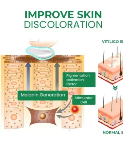 The Fivfivgo™ VitiligoFix Revitalize Elixir showcases distinctive qualities in reducing the immune response within vitiligo patches. By applying this soothing cream to the affected skin, you can halt depigmentation and aid in the restoration of damaged keratinocytes and melanocytes. It helps repigment the skin affected by vitiligo. Its unique formula stimulates melanocytes, the skin cells responsible for producing melanin, the pigment that gives color to the skin.
