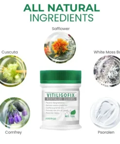 With its potent moisturizing properties, Fivfivgo™ VitiligoFix Revitalize Elixir deeply penetrates even the thickest areas of the skin, providing both immediate and long-term relief. This cream is highly effective in treating a range of conditions, including vitiligo, leukoplakia, skin discoloration, and various pigmentation disorders. It is suitable for addressing hyperpigmented skin concerns anywhere on the body.