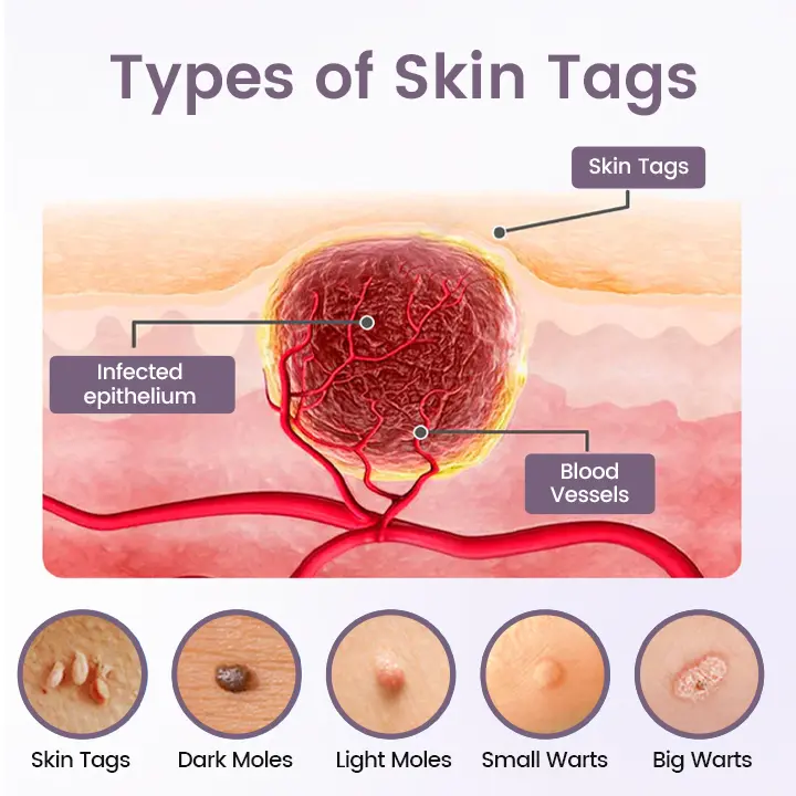 Warts, skin tags, small bumps, and rough patches often form when the skin experiences: