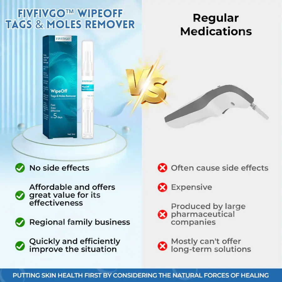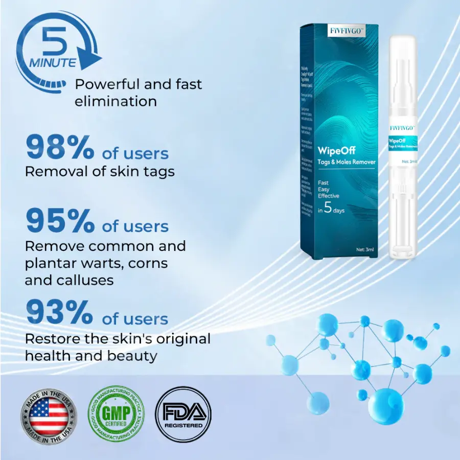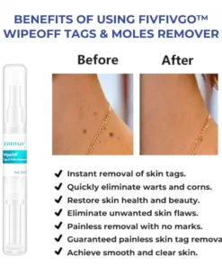 Highly recommended by dermatologists and skincare experts, the Fivfivgo™ WipeOff Tags & Moles Remover is a proven and effective treatment for common skin imperfections, offering visible results in just minutes.This proven liquid formula effectively targets common skin imperfections.