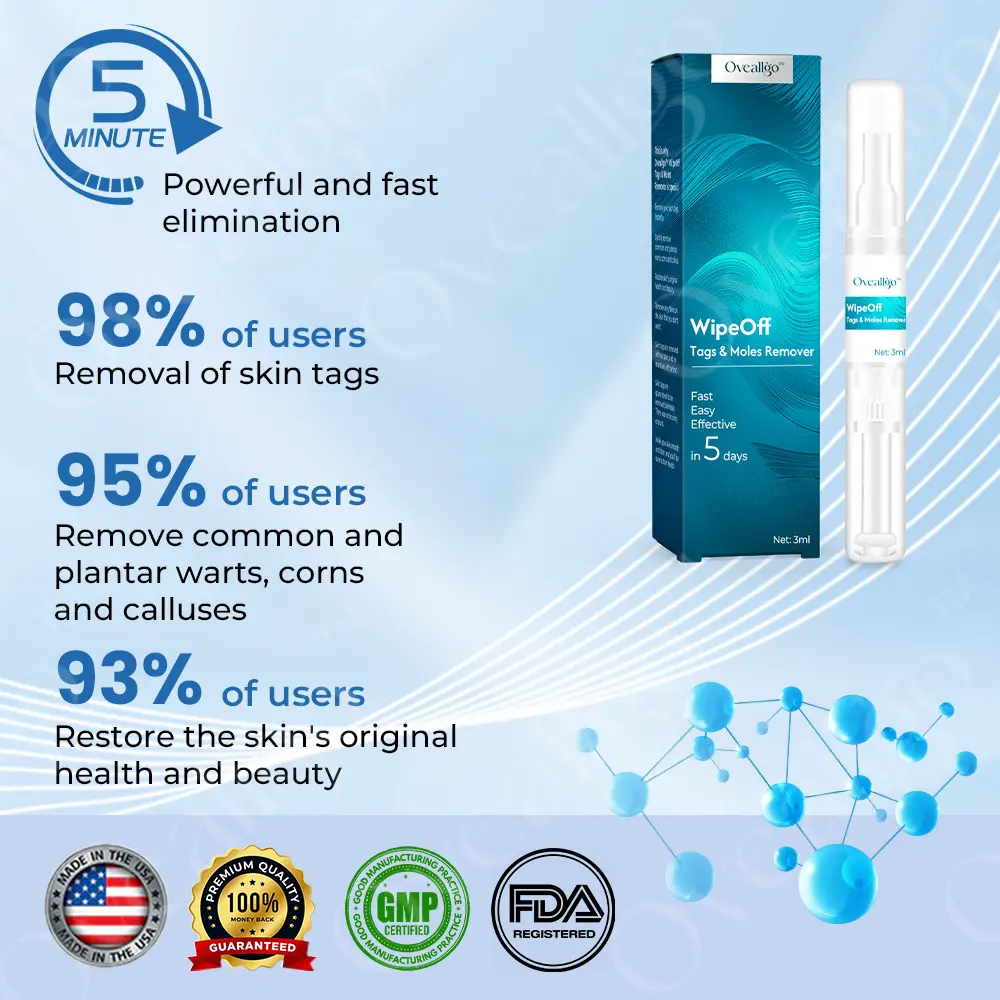 Highly recommended by dermatologists and skincare experts, the Oveallgo™ WipeOff Tags & Moles Remover is a proven and effective treatment for common skin imperfections, offering visible results in just minutes.This proven liquid formula effectively targets common skin imperfections.