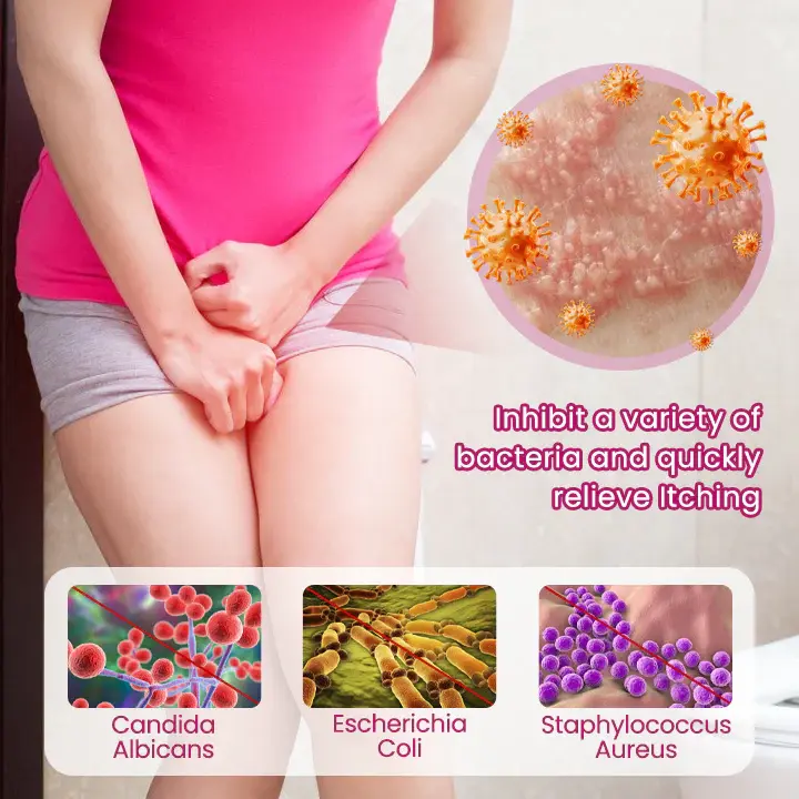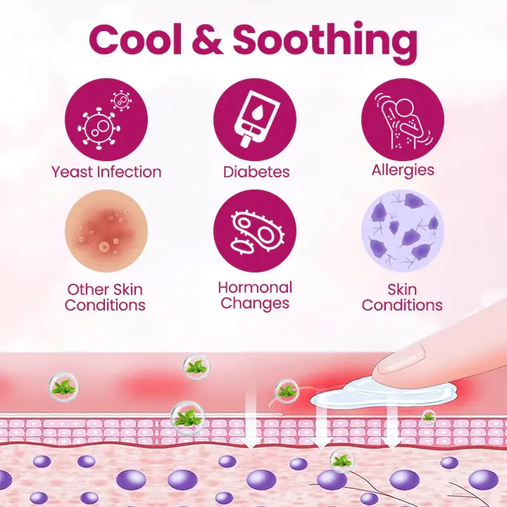 This formula combines traditional herbal ingredients clinically known to relieve itching, burning, and redness—whether caused by microbial imbalance, dryness, or inflammation. It calms nerve-end sensitivity and supports skin resilience.